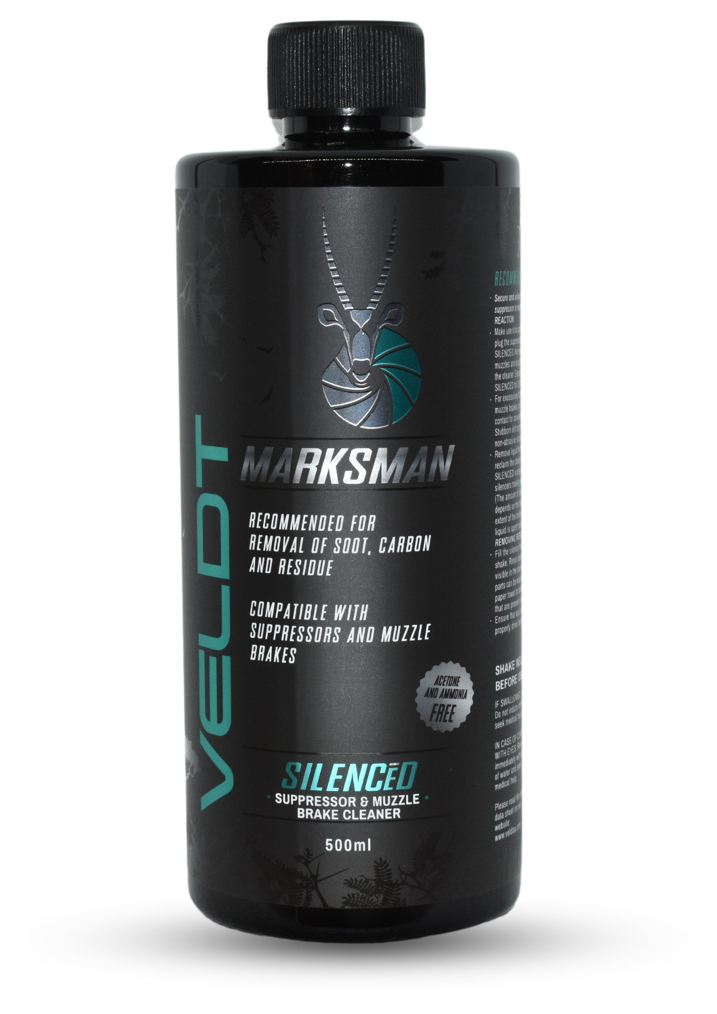 SILENCED is a chemical compound developed to deep-clean rifle and sidearm suppressors and muzzle brakes. SILENCED is specially engineered to lift carbon and other residues from metal surfaces and keep it in suspension while the special chemical surfactant blend goes to work on the rinsing and neutralising of residual fouling. Our technology enables the cleaner to penetrate small spaces and crevices to remove fouling and loosen stubborn deposits that hamper equipment functionality. SILENCED is safe for use on various metal and coated surfaces but anodized surfaces should be avoided. SILENCED was developed to silence your problem without cleaning out your pocket."BRING FORTH THE MARKSMAN in you"